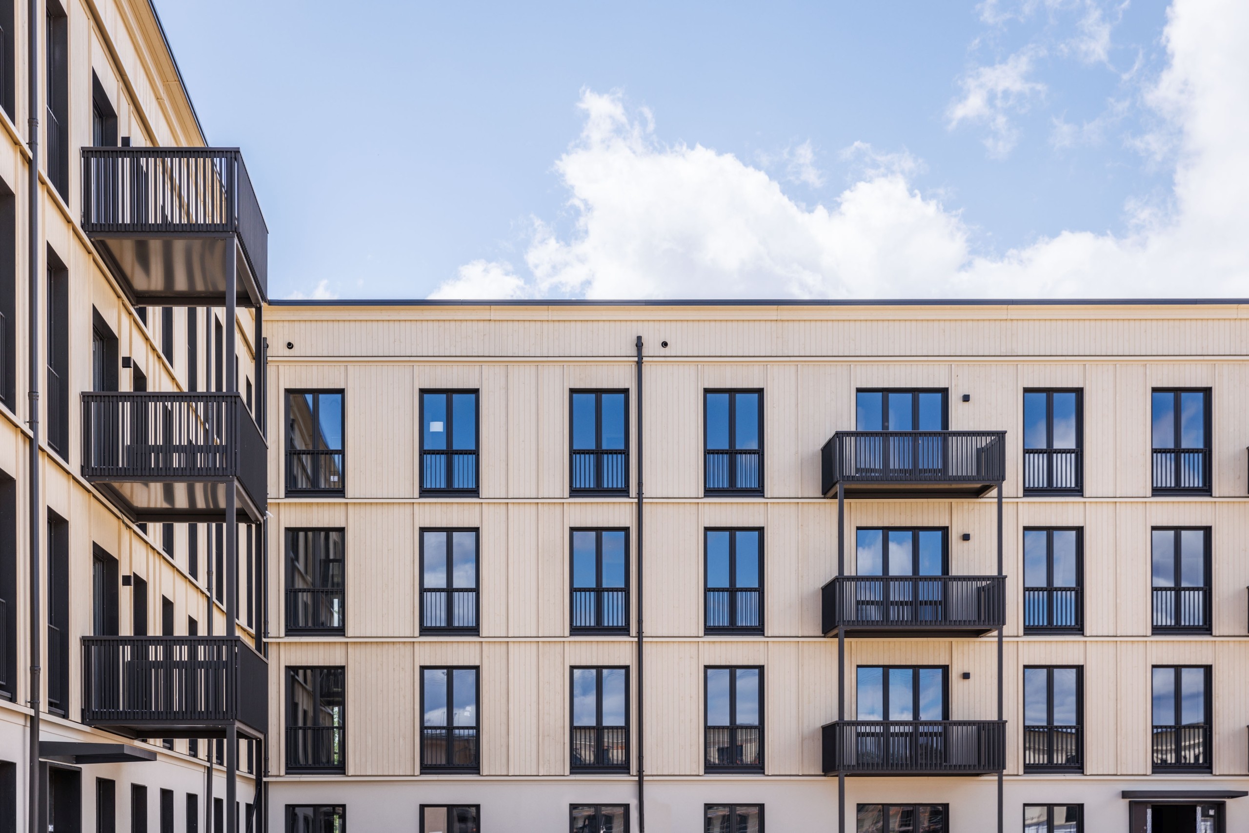 Hoher Förderanteil, günstige Mieten Neubauwohnungen in serieller Holzhybridbauweise