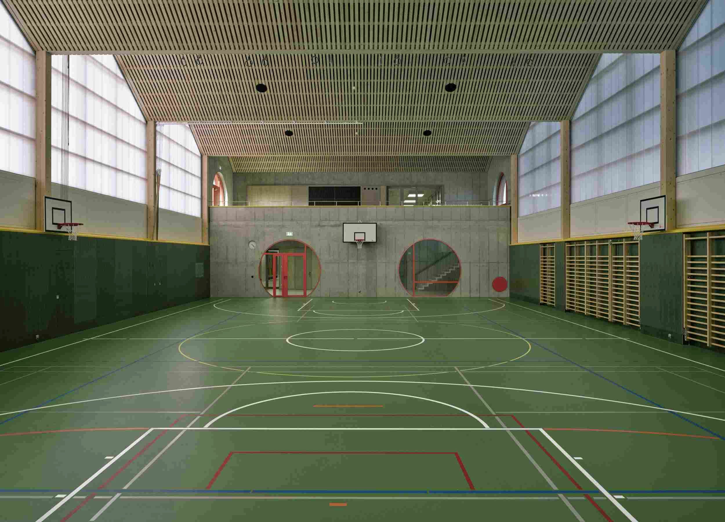 Die Rodeca-Fassade in der Turnhalle erzeugt eine angenehme Lichtatmosphäre.